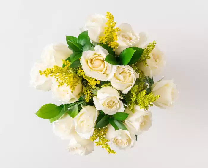 3 avaliações para Buquê de 15 Rosas Brancas e Folhagem