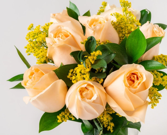 Simpatia, admiração e fidelidade, esses são os significados que as rosas na cor champanhe trazem. Esse buquê, que vem acompanhado por uma caixa de bombons, é perfeito para oferecer à pessoa amada nos momentos mais especiais.