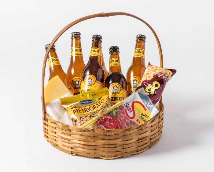 Com um acabamento primoroso em celofane, ráfia e palha, essa deliciosa cesta composta com 6 cervejas, queijos, salgadinhos, amendoim e salame, é o presente perfeito para desfrutar de momentos de felicidade e confraternização
