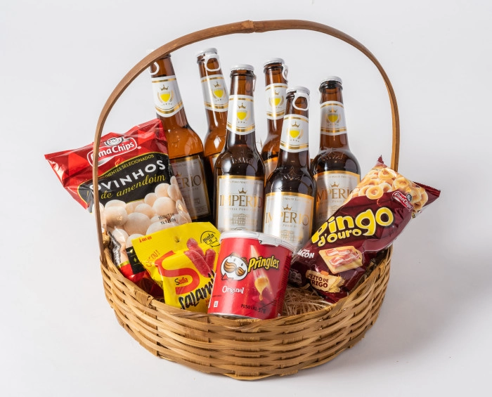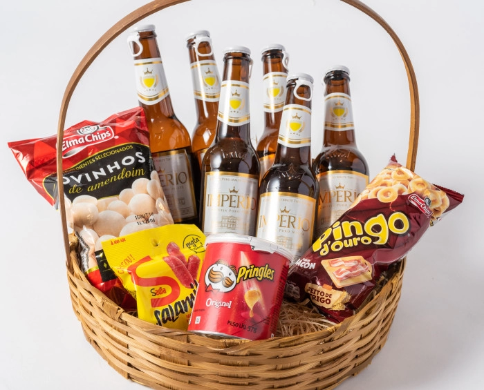 Deliciosa e refrescante, a cerveja traz momentos de alegrias a todos que a apreciam. Nessa cesta perfeita, com acabamento em ráfia e palha, dando um toque rústico em seu presente, são 6 unidades acompanhadas de aperitivos, salgadinhos e salamitos.